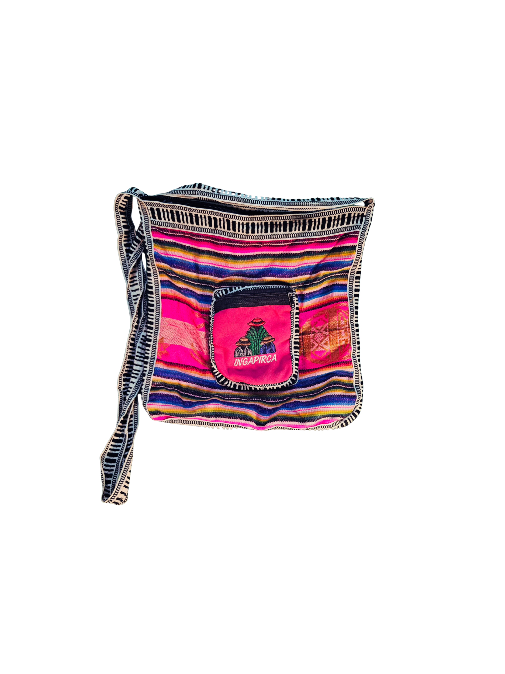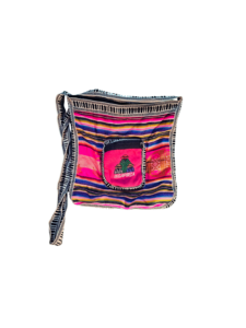 Bolso bordado a mano de tamaño compacto con diseño colorido. Ideal para salidas casuales o como complemento ligero. En buen estado.Venta por mudanza.