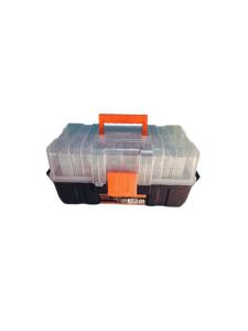 Práctica caja organizadora de herramientas, fabricada en plástico resistente, ideal para mantener tornillos, clavos, accesorios y herramientas pequeñas perfectamente ordenadas.