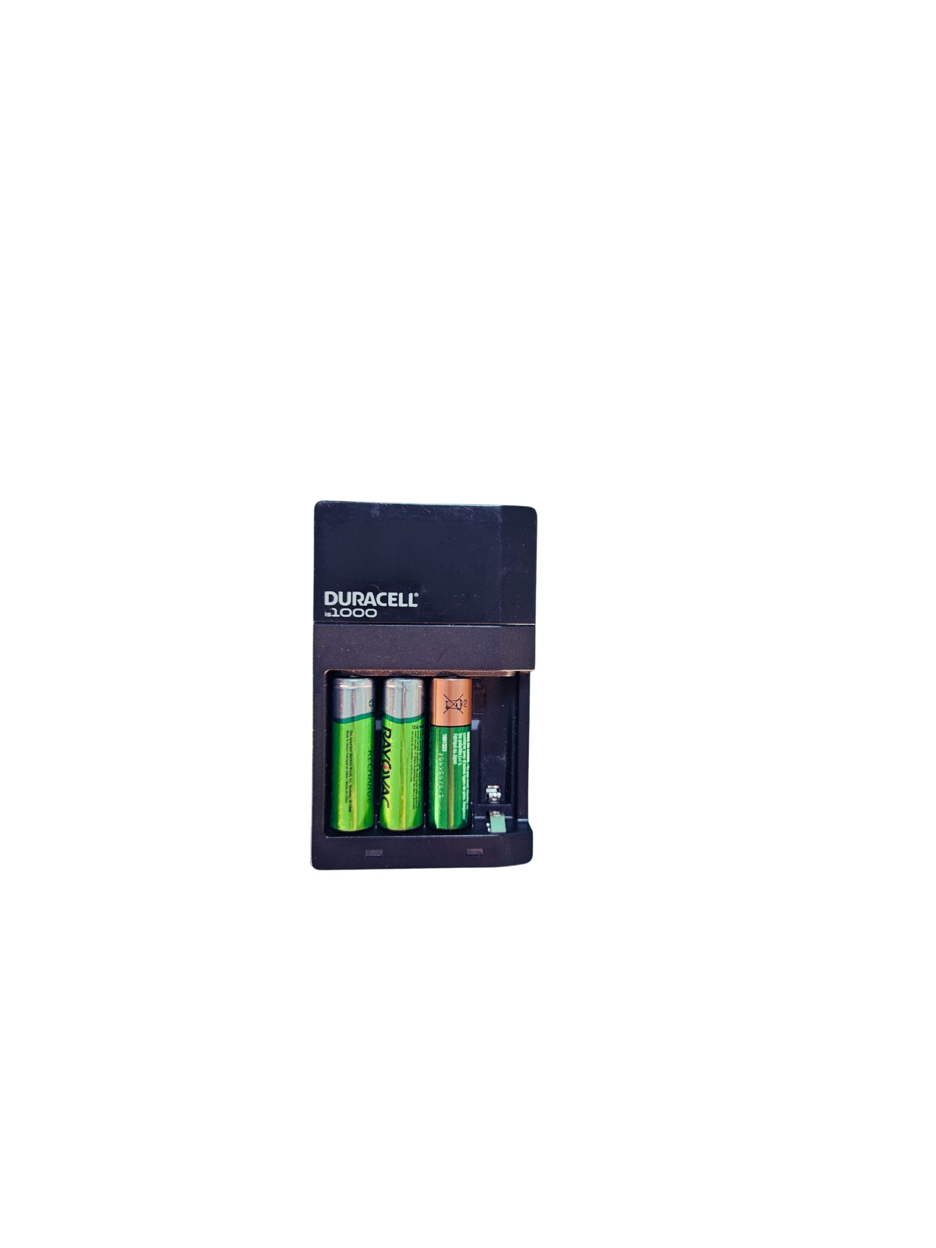 Cargador Duracell para pilas recargables, diseñado para ofrecer una carga segura, eficiente y confiable. Ideal para el uso diario en el hogar u oficina, compatible con pilas recargables tipo AA.