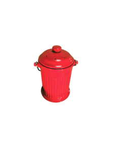 Cuenta con tapa perforada para ventilación y asas laterales que facilitan su manejo. Aunque fue diseñada para el compostaje doméstico, su tamaño y estética la convierten en una pieza perfecta para múltiples usos, como almacenamiento de bolsas reutilizables, reciclaje seco, utensilios de cocina o incluso como contenedor decorativo.
