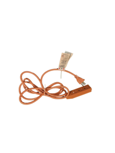 Extensión eléctrica en color naranja, compuesta por un cable largo y una regleta integrada que permite conectar varios dispositivos desde una sola toma de corriente. Cuenta con enchufe con conexión a tierra, lo que brinda mayor seguridad para el uso de aparatos eléctricos.