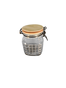 Este frasco de vidrio hermético es ideal para almacenar alimentos de forma segura y organizada. Cuenta con tapa de madera y cierre metálico que ayuda a mantener el contenido protegido y fresco.