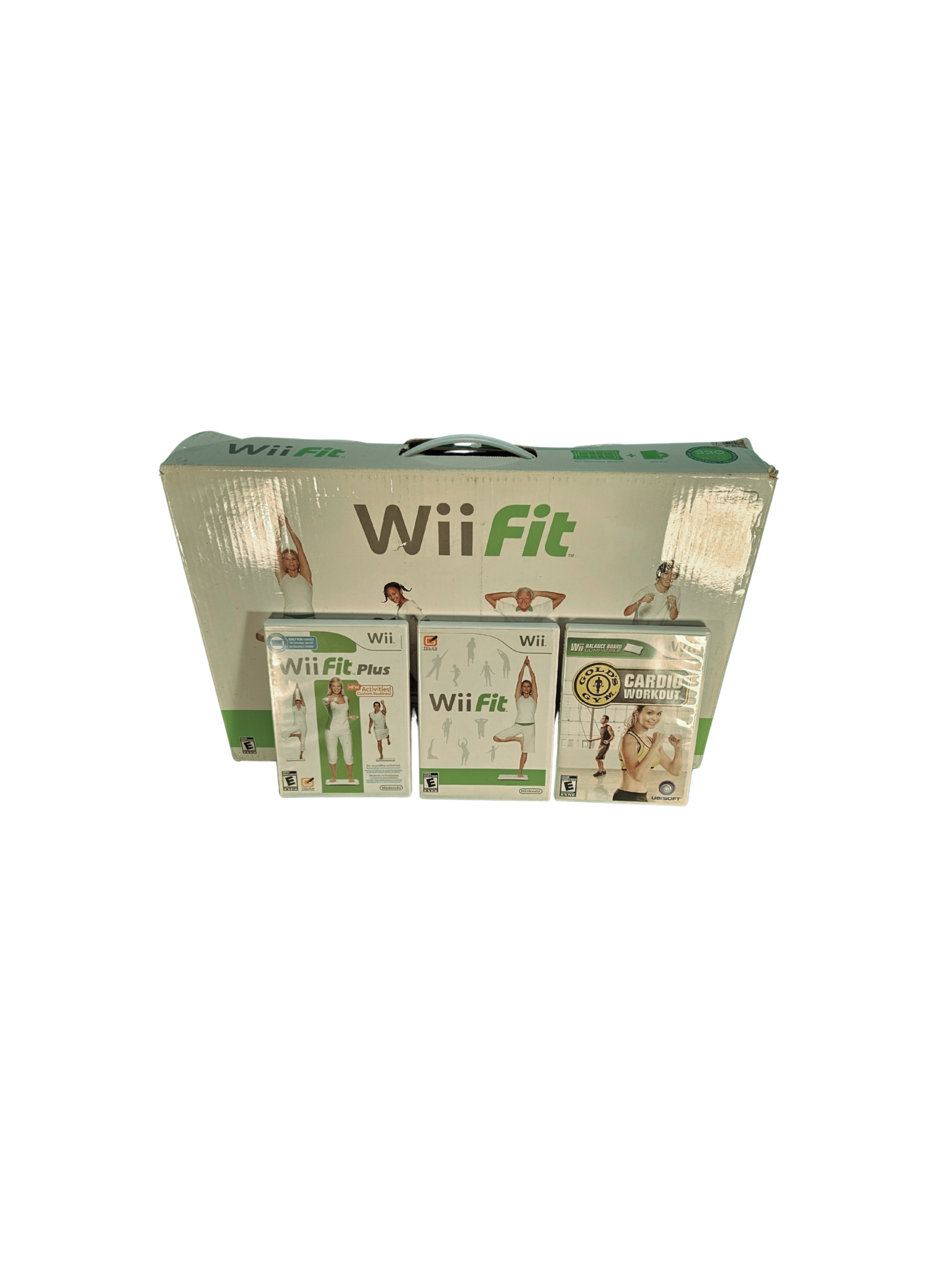 Incluye Wii Balance Board original con caja y 3 juegos compatibles: Wii Fit, Wii Fit Plus y Gold’s Gym Cardio Workout.