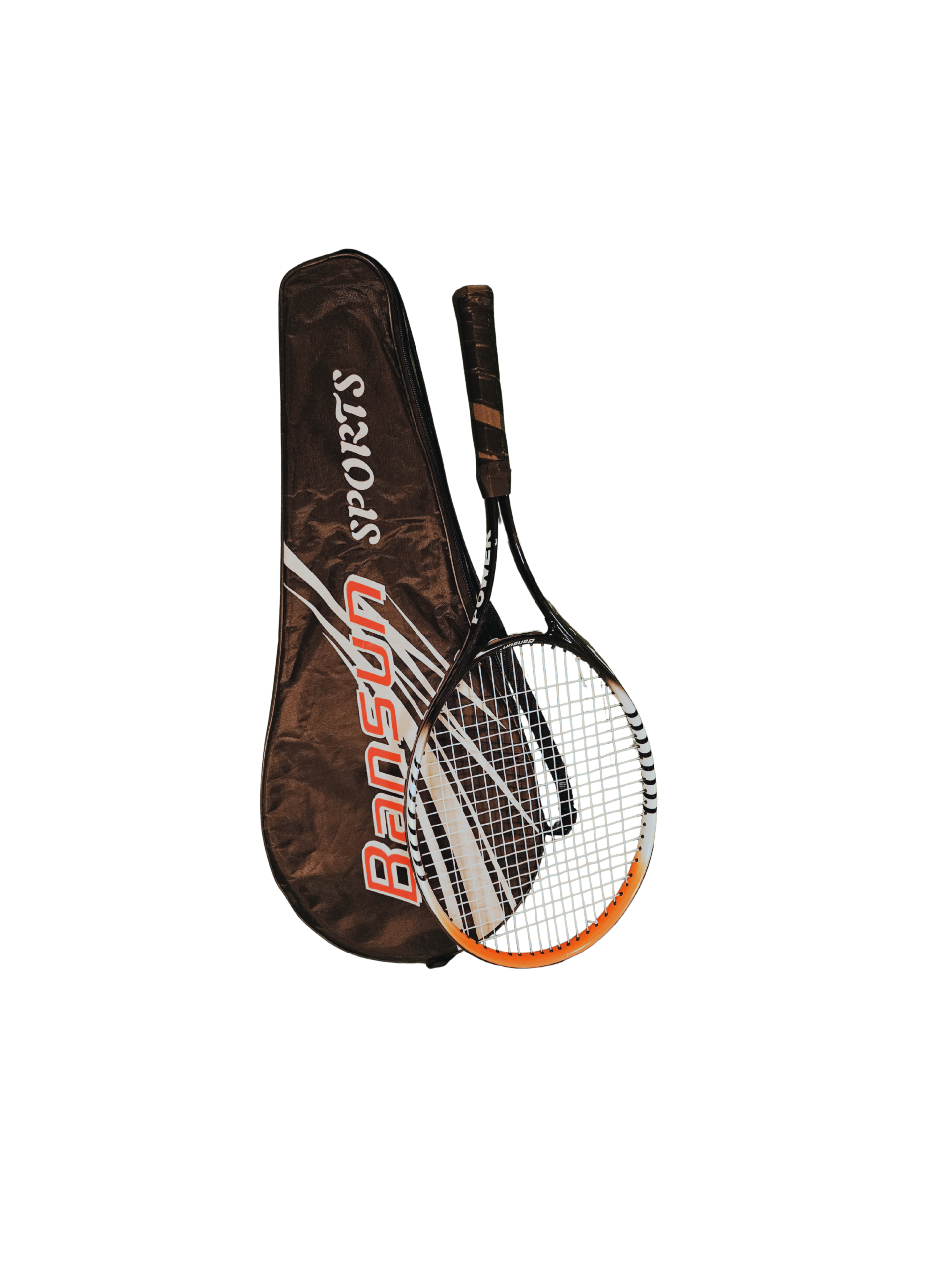 Raqueta de tenis color naranja, en buen estado general.Ideal para uso recreativo, juegos casuales o entrenamiento ligero. Una opción económica y funcional para disfrutar del deporte.