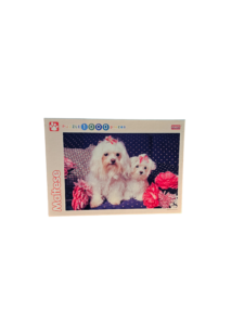Este rompecabezas de 1000 piezas presenta una encantadora imagen de perritos Maltés, rodeados de flores, creando una escena dulce y acogedora perfecta para los amantes de los perros.