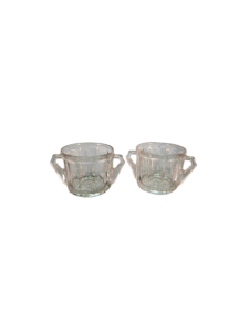 Este set de envases de vidrio incluye dos piezas con asas laterales, diseñadas para facilitar su uso y aportar un toque clásico y elegante a la cocina o comedor.
