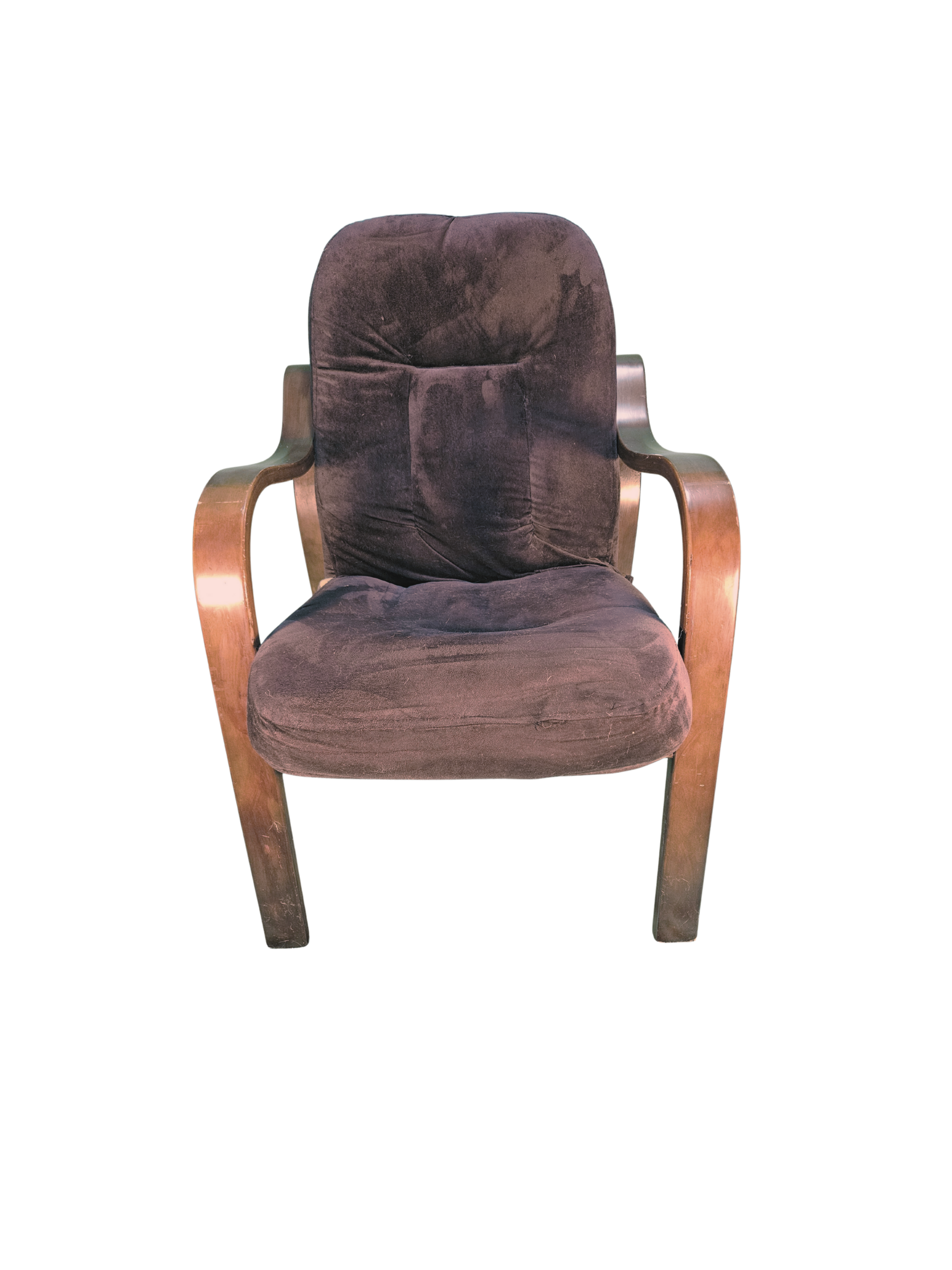 Silla tapizada en terciopelo color morado, cómoda y decorativa. Aporta un toque elegante y acogedor, ideal para sala, dormitorio o estudio.