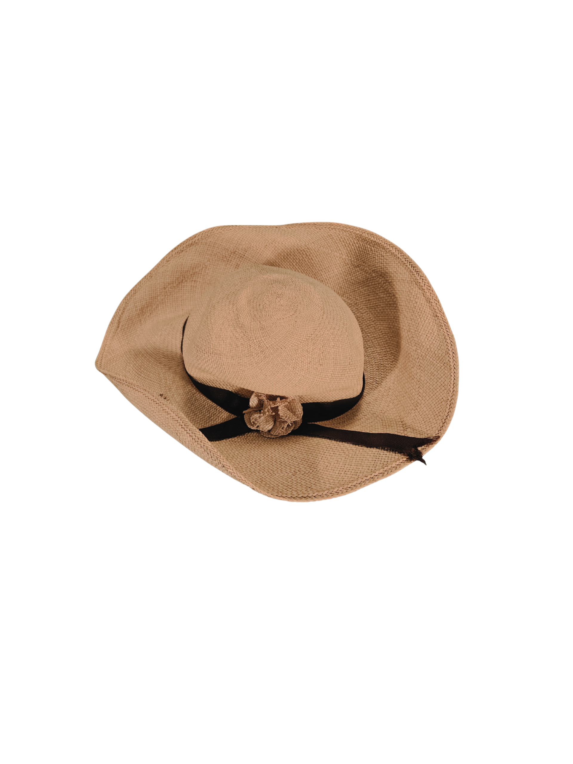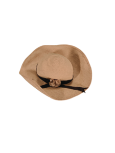 Sombrero tejido de color beige con cinta decorativa, ideal para días soleados, playa, paseos o eventos informales al aire libre. Diseño ligero y femenino, fácil de combinar con ropa casual o veraniega. En buen estado.