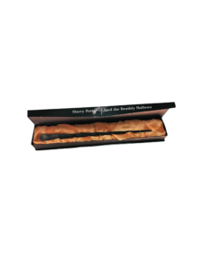 Esta varita de Ron Weasley es una réplica inspirada en el universo de Harry Potter, presentada en un estuche coleccionable con temática de Deathly Hallows.