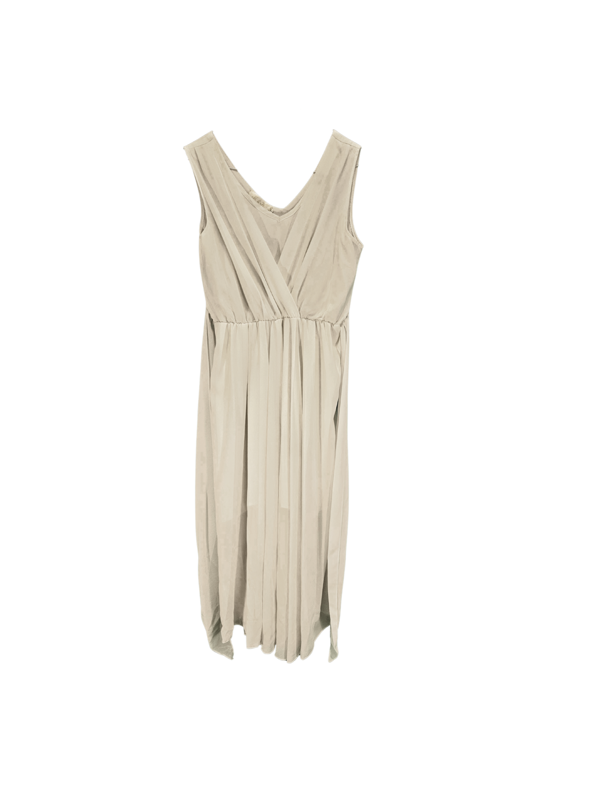 Vestido largo color marfil de estilo fluido, sin mangas. Ideal para eventos, cenas, celebraciones o climas cálidos. Diseño elegante y cómodo. En buen estado.